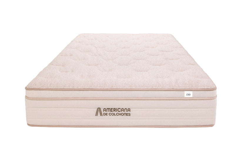 ALGODÓN ORGÁNICO: Posee gran capacidad de repeler la humedad, facilitando su evaporación al medio ambiente. Fibras naturales. Propiedades de rápido secado, ofrece una sensación fresca durante la noche. Características termorreguladoras y confort al colchón. ESPUMA COOL SENSATION WAVE: Perfecta regulación de la humedad: espuma de célula abierta, capaz de absorber casi cuatro veces más humedad que los colchones de espuma tradicionales. Alta elasticidad: garantiza una gran libertad de movimiento. Regulación óptima de la temperatura: La absorción de calor se reduce significativamente y se distribuye uniformemente, creando una sensación de frescura en el entorno. Perfecto alivio de los puntos de presión: su estructura de célula abierta y heterogénea permite el equilibrio en el cuerpo. ESPUMA CBD: Promueve el sueño profundo y reparador debido a que estimula nuestro sistema endocannabinoide. Controla la ansiedad y el estrés. Aroma relajante y terapéutico. Máxima comodidad. Con infusión de CBD. UNIDAD RESORTADA NANO COIL: Mejor adaptación y alivio de los puntos de presión. Disminuye la traslación de movimiento. Mayor número de resortes, mayor soporte. UNIDAD POCKET 5 ZONAS ENCAJONADA: Ofrece soporte en 5 zonas del cuerpo (cabeza, hombros, zona lumbar, piernas y pies). Relaja los músculos y reduce los puntos de presión. Disminuye la traslación del movimiento y elimina el ruido ocasionado por el desplazamiento. El encajonado ofrece soporte y estabilidad directamente al borde del colchón con un perímetro más firme. TRATAMIENTO PUROTEX: Crea un ambiente para dormir saludable y limpio 100% de forma natural y ecológica. Neutraliza las sustancias que causan alergias en el colchón. Deshidrata el microclima y suprime las bacterias nocivas.